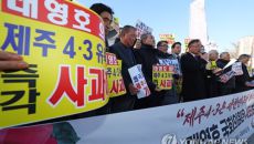 (제주=연합뉴스) 고성식 기자 = 제주4·3희생자유족회는 '4·3이 북한 김일성 지시에 의해 촉발됐다'는 입장을 고수하는 국민- 2023.02.20 17:15