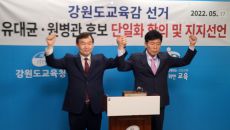 (춘천=연합뉴스) 양지웅 기자 = 제8회 전국동시지방선거를 보름 앞두고 원병관 강원도 교육감 후보가 사퇴 및 유대균 후보 지지- 2022.05.17 17:59