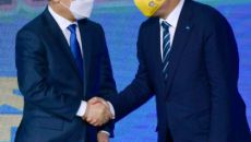 (서울·완주=연합뉴스) 강병철 강민경 기자 = 더불어민주당 대권주자인 김두관 의원이 26일 경선 후보직에서 사퇴하고 이재명 후- 2021.09.26 18:37
