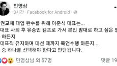 민영삼 전 윤석열 캠프 특보가 다시 이준석 국민의힘 대표에게 “길을 모르면 물어서 가라”며 훈계 메시지를 전했다. 민 전 특보는 22일 밤 페이스북에 ‘- 2021.08.23 08:48