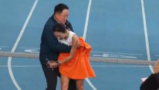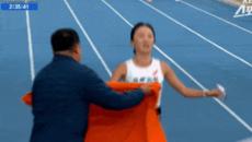 [OSEN=우충원 기자] 인천국제마라톤에서 국내 여자부 우승을 차지한 이수민(삼척시청)이 결승 직후 벌어진 소속팀 김완기 감독- 2025.11.26 10:31