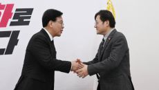 송언석 국민의힘 원내대표가 22일 오후 서울 여의도 국회에서 홍익표 대통령비서실 정무수석을 접견하며 악수를 하고 있다. 안주영- 2026.01.22 17:43