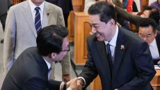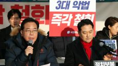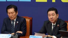 더불어민주당 정청래 대표와 김병기 원내대표가 11일 서울 여의도 국회에서 열린 의원총회에서 대화를 하고 있다. 저작권자 © C- 2025.12.11 14:53