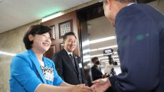 의원들에게 인사하는 김병기·서영교 원내대표 후보