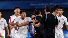 북한 축구대표팀이 ‘2022 항저우 아시안게임’ 일본전에서 상대팀 선수들과 심판에 과격한 행동을 보여 ‘깡패 축구’라는 오명까- 2023.10.04 16:09