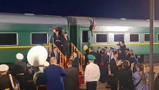 김정은 북한 국무위원장이 12일 오전 러시아와의 접경인 연해주 하산역에 도착해 군악대의 환영 연주가 울리는 가운데 웃음 띤 얼- 2023.09.13 00:05