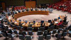 유엔 안전보장이사회(안보리)가 13일 오후(현지시간) 미국 뉴욕 유엔본부에서 공개 회의를 열고 최근 북한의 대륙간탄도미사일(I- 2023.07.14 06:50