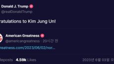 과 관련해 2일(현지시간) 김정은 북한 국무위원장에게 공개적으로 축하 메시지를 보냈다. 공화당 내부에서는 2024년 대선 레이- 2023.06.03 20:27
