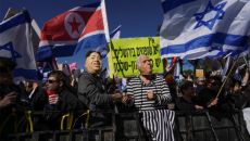 이스라엘 시위에 김정은 가면 등장