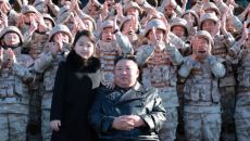 김정은 북한 국무위원장이 대륙간탄도미사일(ICBM) 발사장과 그 이후 ICBM 공로자들을 치하하는 자리에 둘째 딸을 대동하고- 2022.11.29 09:28
