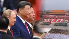 [앵커] 김정은 북한 국무위원장과 블라디미르 푸틴 러시아 대통령은 각각 시진핑 중국 국가주석의 좌우에서 열병식을 지켜봤습니다.- 2025.09.03 15:11