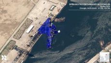 지난달 21일 진수식 도중 넘어져 좌초한 5천t급 구축함의 선체를 북한 당국이 똑바로 세우는 데에 성공했다는 항공사진 분석 결- 2025.06.04 15:38