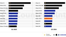 올해 3분기 글로벌 스마트폰 판매량 상위 10위권 안에 삼성전자와 애플 제품이 각각 5개씩 랭크되며 시장을 양분하고 있는 것으- 2025.12.08 18:06