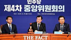 [더팩트ㅣ국회=배정한 기자] 민홍철 더불어민주당 중앙위원회 의장(가운데)이 15일 오전 서울 여의도 국회에서 열린 제4차 중앙- 2025.12.15 12:59