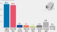 내년 지방선거 지지후보…민주 38.5%·국힘 36.8%, 오차범위 내[창간특집 여론조사]