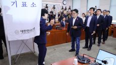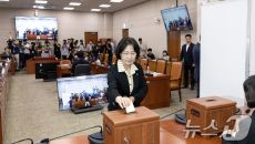 야당 간사 선임 안건에 투표하는 범여권 의원들