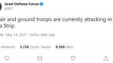 국방부 트위터 통해 “지상군 공격 중” 밝혀 하마스 로켓이 가자지구에서 오폭하는 영상도 게재 이스라엘과 팔레스타인의 교전이 최- 2021.05.14 07:38