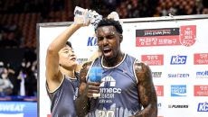 [사진] 허웅 축하 물세례 받는 라건아