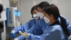 국민의당 안철수 대선후보가 설 연휴 마지막 날인 2일 부인 김미경 교수, 딸 안설희 박사와 함께 코로나19 검체 채취 봉사활동- 2022.02.02 17:19