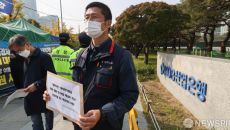 (서울=연합뉴스) 윤우성 기자 = 이스타항공에서 정리해고된 직원들이 중앙노동위원회(중노위)의 판단이 부당하다며 행정심판을 청구- 2021.10.12 12:44