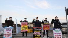 (서울=연합뉴스) 권희원 기자 = 아시아나항공[020560] 노동조합과 아시아나항공 조종사노동조합이 이동걸 산업은행 회장을 비- 2020.11.25 16:05