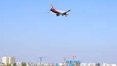 (대구=뉴스1) 공정식 기자 = 26일 오전 제주에서 출발한 아시아나항공 여객기가 대구국제공항으로 착륙하기 위해 고도를 낮춰- 2020.04.26 12:49