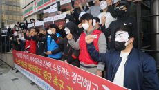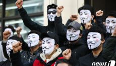 가이 포크스 가면 쓴 이스타항공 노조원들