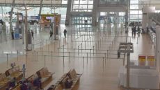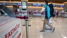 텅 빈 이스타항공 카운터 앞 지나는 여행객들