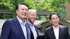 바이든 "한일 정상 용기에 사의" 윤석열 "3국 단단히 결속" 기시다 "새로운 역사"