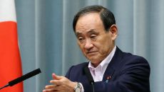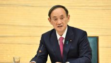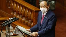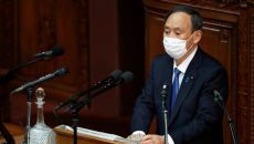 스가 요시히데(菅義偉) 일본 총리가 28일 조 바이든 미국 대통령과 첫 전화회담 후 취재진과 만나 미국, 일본, 호주, 인도- 2021.01.28 09:20