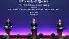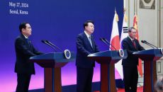 윤석열 대통령은 27일 "양자 관계에서 풀기 어려운 문제도 3국 협력을 통해 풀어나갈 수 있을 것"이라며 "굳건한 3국 협력- 2024.05.27 12:50