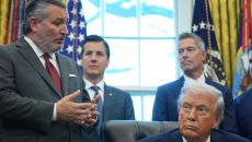 [워싱턴=뉴스핌] 박정우 특파원 = 도널드 트럼프 미국 대통령이 3일(현지 시간) 뇌물 혐의로 기소된 민주당 소속 헨리 쿠엘라- 2025.12.04 04:06