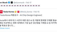 일론 머스크 테슬라 최고경영자(CEO)가 자신의 소셜네트워크서비스(SNS)를 통해 한국 인공지능(AI) 반도체 인재 모집에 관- 2026.02.19 04:30