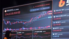 (서울=뉴스1) 황기선 기자 = 22일 서울 서초구 빗썸라운지 전광판에 비트코인 등 가상자산 시세가 표시되고 있다. 이날 비트- 2025.05.22 15:34