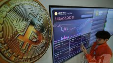 (서울=뉴스1) 김진환 기자 = 12일 서울 서초구 빗썸라운지 강남점 전광판에 비트코인 등 가상자산 시세가 표시되고 있다. 비- 2025.05.12 13:12