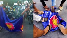 미얀마 찾은 아세안 특사단, 시민들 곳곳에서 아세안기 불태워