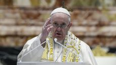 [서울=뉴시스] 이재우 기자 = 프란치스코 교황이 4일(현지시간) 부활절을 맞아 지구촌에 코로나19로 어려움을 겪고 있는 취약- 2021.04.04 23:00