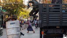 미얀마 군경, 시위대에 첫 발포…11개 서방국 “세계가 지켜본다”
