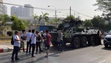 [앵커] 미얀마 곳곳에서 쿠데타에 항의하는 시위가 열흘째 이어지는 가운데 미얀마 최대 도시 양곤 시내에 장갑차가 등장하는 등- 2021.02.15 17:08