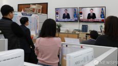 윤석열 대통령 담화 바라보는 더불어민주당 당직자들