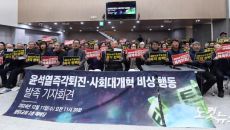 '윤석열 즉각 탄핵' 외치는 기자회견 참석자들