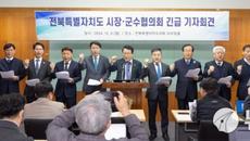 [전주=뉴스핌] 고종승 기자 = 전북자치도 시장·군수협의회는 9일 전북자치도의회 브리핑룸에서 긴급 기자회견을 갖고 "탄핵은 국- 2024.12.09 17:05