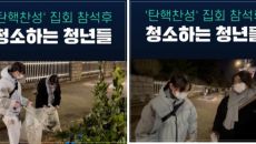 손 빨개지도록 거리 청소…집회 나온 청년들 "괜히 한 소리 듣기 싫어"