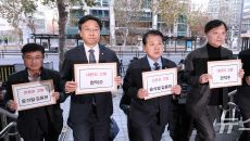[서울=뉴스핌] 정일구 기자 = 엄길용 공공운수노조 위원장 등 조합원들이 9일 오후 서울 중구 서울역 광장에서 열린 '힘내라- 2024.12.09 16:09