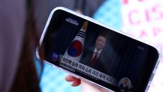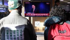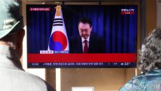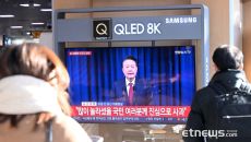 윤석열 대통령 담화 시청하는 서울역 시민들