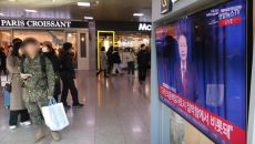 (서울=뉴스1) 신웅수 기자 = 윤석열 대통령에 대한 국회 탄핵안 표결일인 7일 오전 서울역 대합실에서 시민들이 윤 대통령의- 2024.12.07 10:25