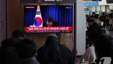 (서울=뉴스1) 신웅수 기자 = 윤석열 대통령에 대한 국회 탄핵안 표결일인 7일 오전 서울역 대합실에서 시민들이 윤 대통령의- 2024.12.07 10:19