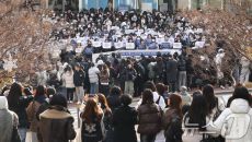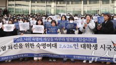 '윤석열 퇴진 시국선언 동참하는 숙명여대 학생들'