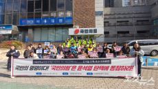 [서울=뉴스핌] 양윤모 기자 = 전국철도노조가 파업에 돌입한 5일 오후 서울역 앞에서 총파업 출정식을 진행하고 있다. 2024- 2024.12.05 14:47