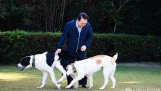 '해피', '조이' 산책 시키는 윤석열 대통령